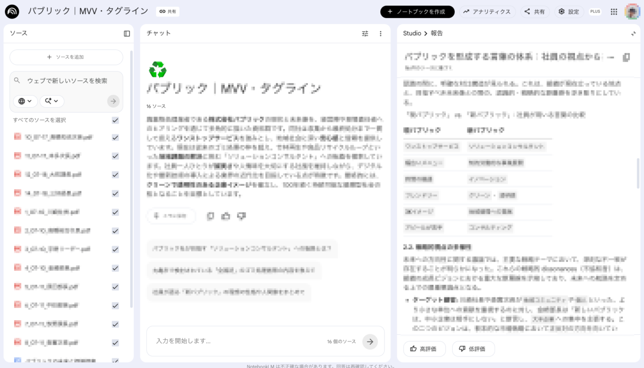 ▲プロデューサ班のリサーチした内容も共有していただき、弊社内でもブランディングに必要な内容として、企業の目指すべき真意がどこにあるのかをAIを用いて再解析しています。
