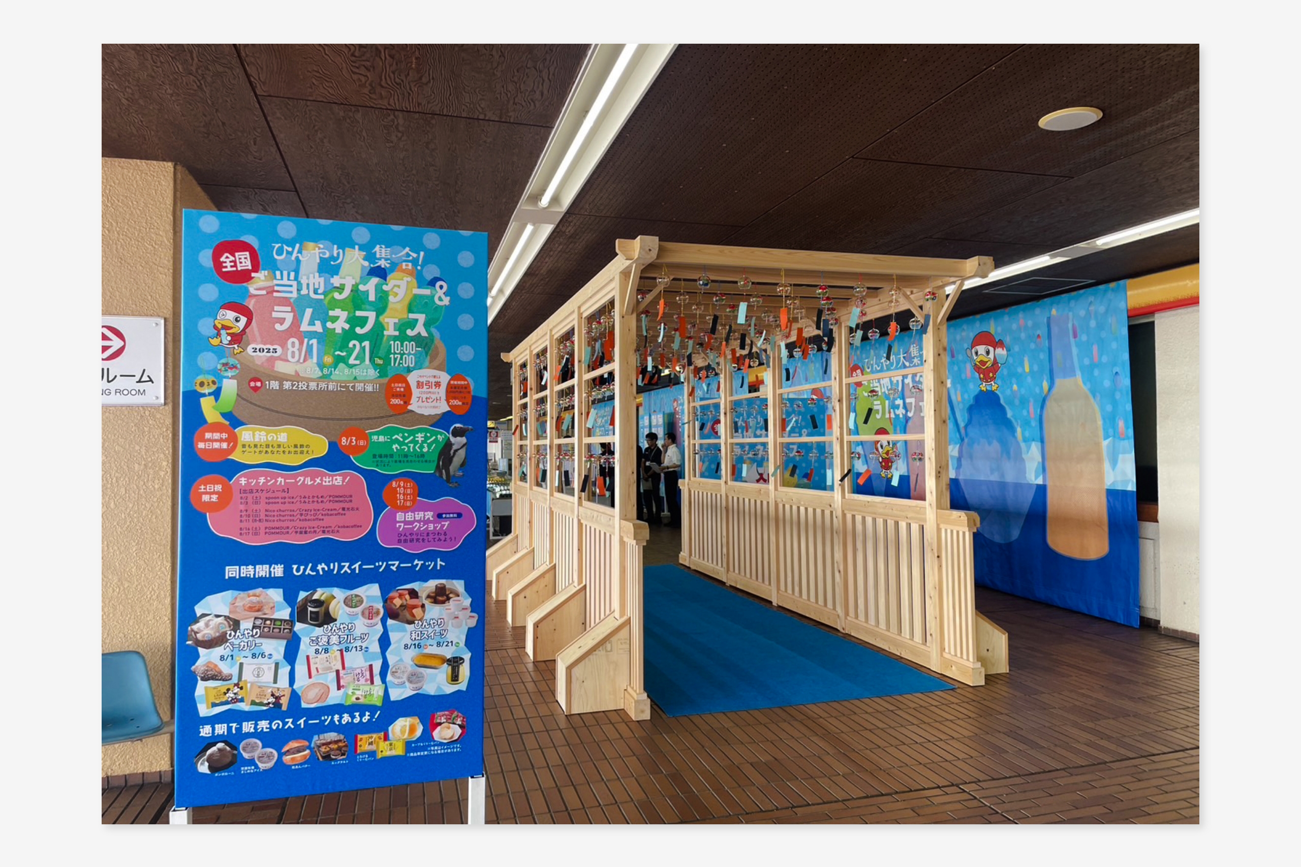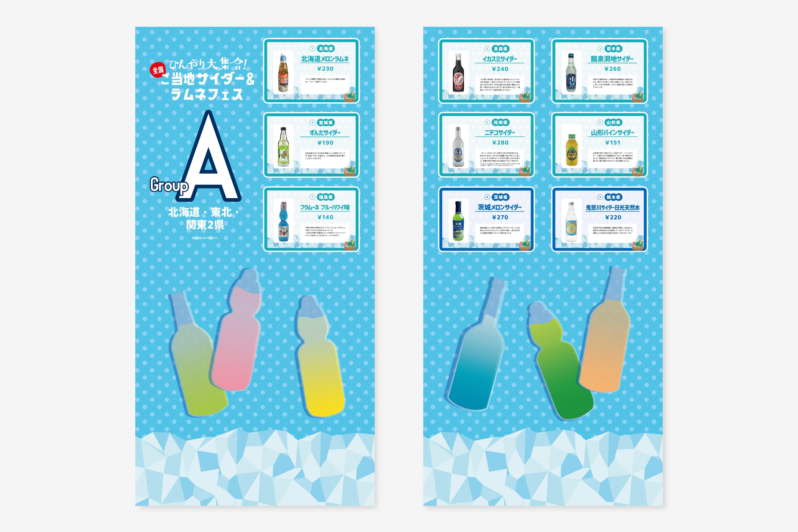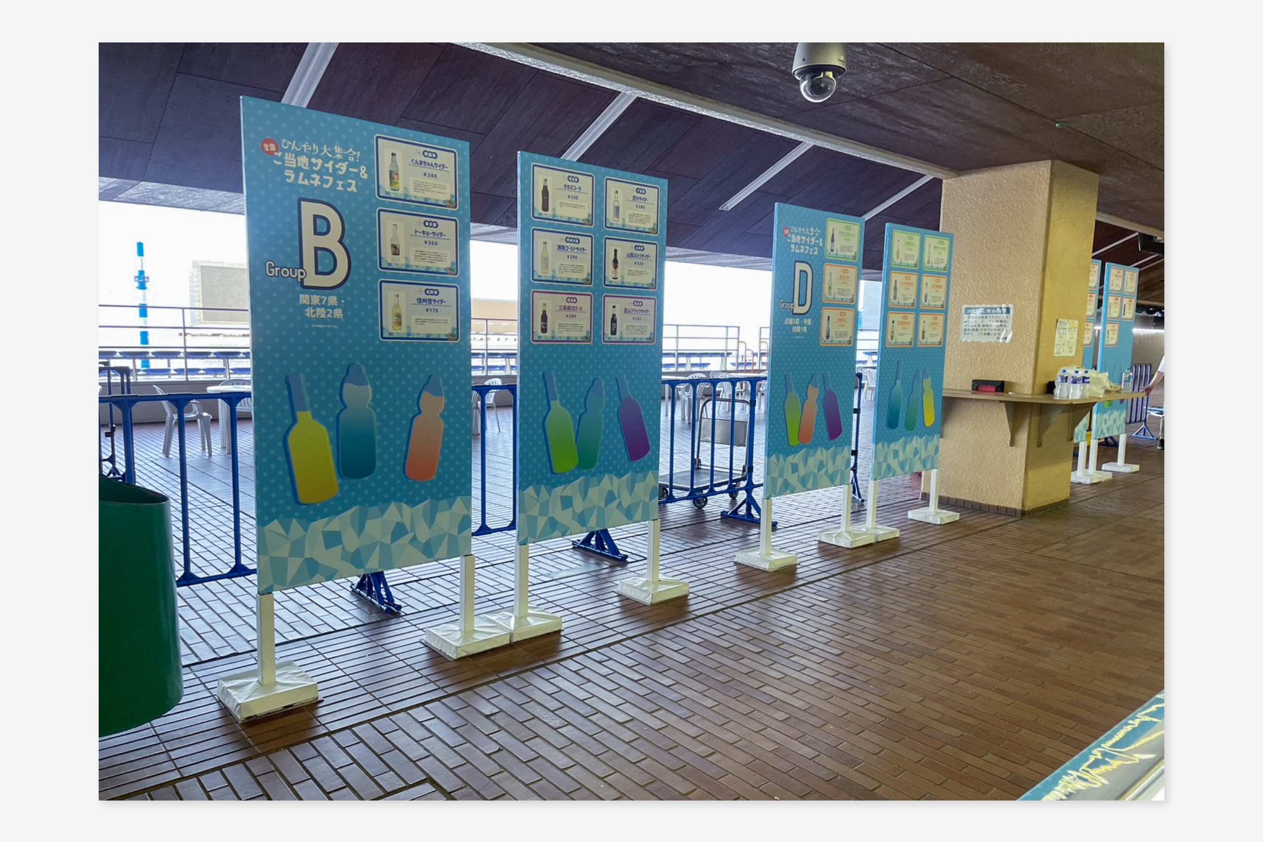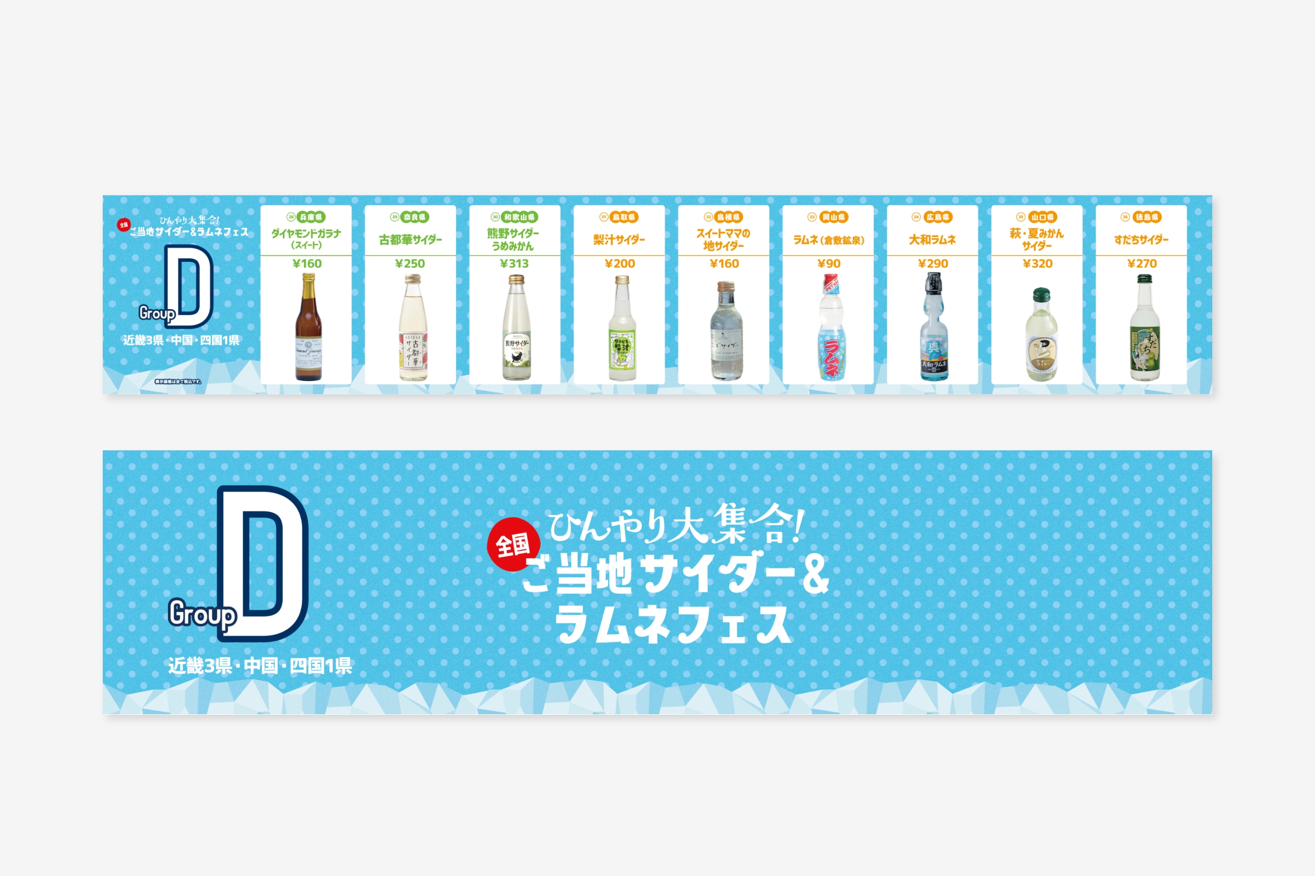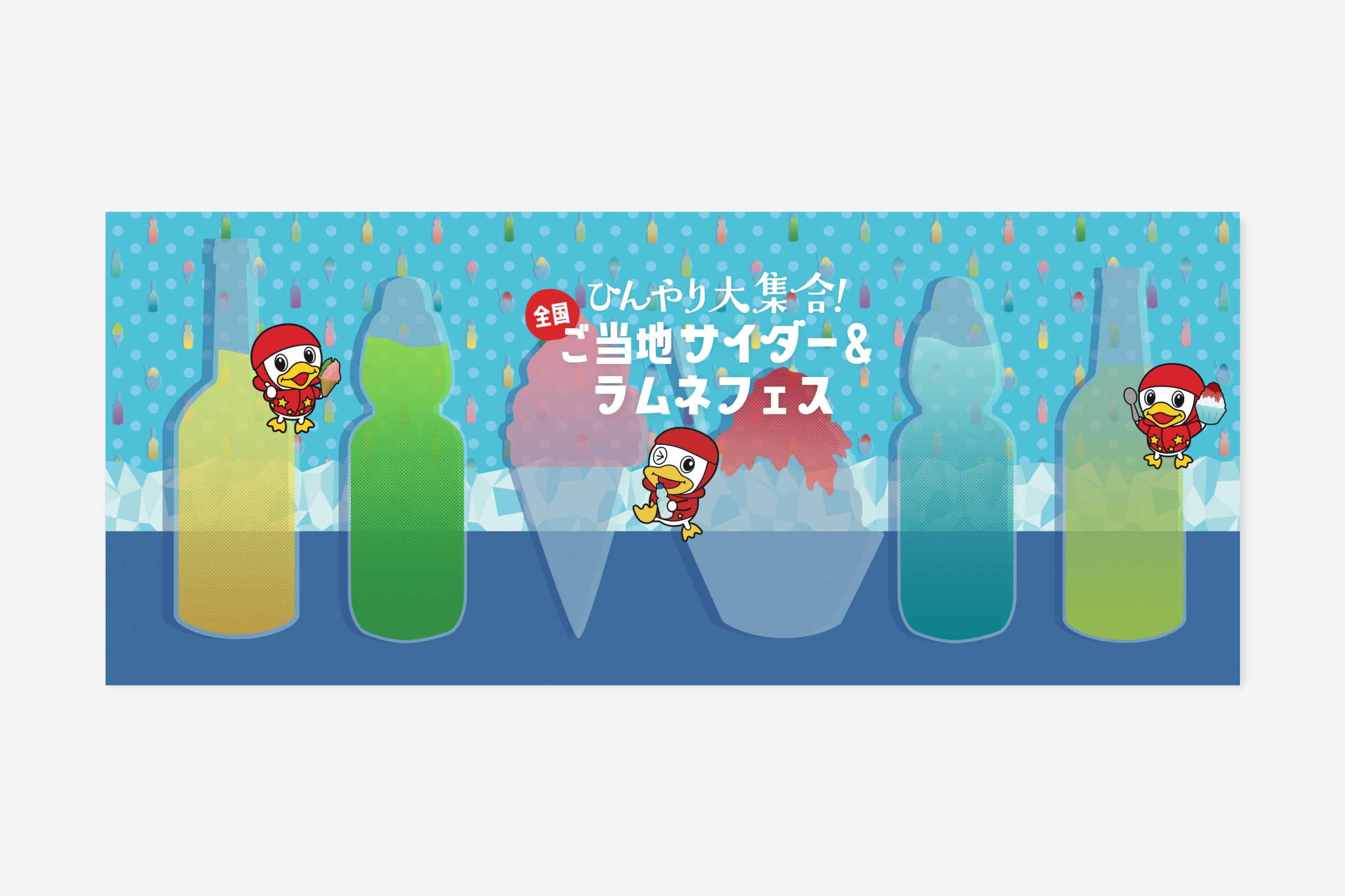□PRツール開発(デザイン)(フライヤー(2種)、柱巻き、WEB広告用バナー、イベントスペース用横幕、サイダー紹介パネル(6セット)、ショーケース用パネル(上部用/下部用)(6セット)、看板、装飾パネル、柱巻き、入場門用横幕 など)