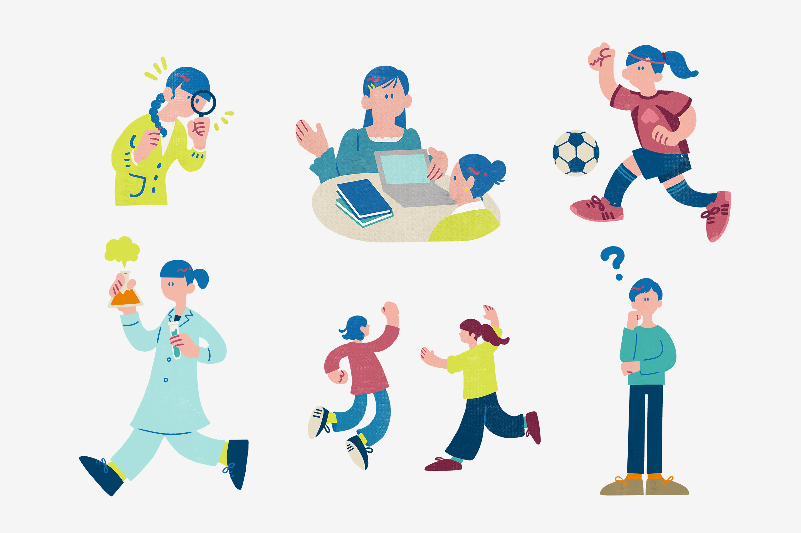 岡山県倉敷市の「岡山学院大学·岡山短期大学」の学校PRイラストを制作しました。パンフレットにて使用しています。