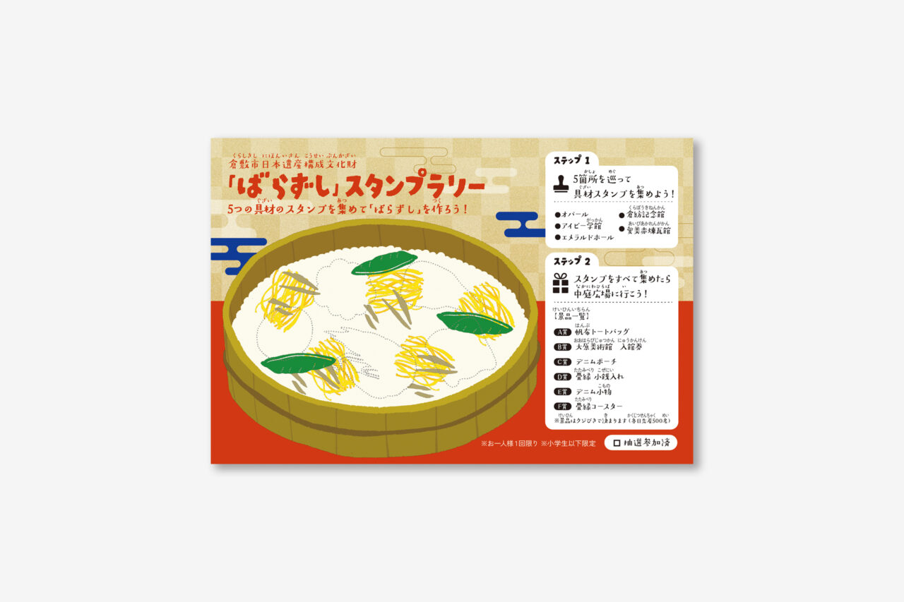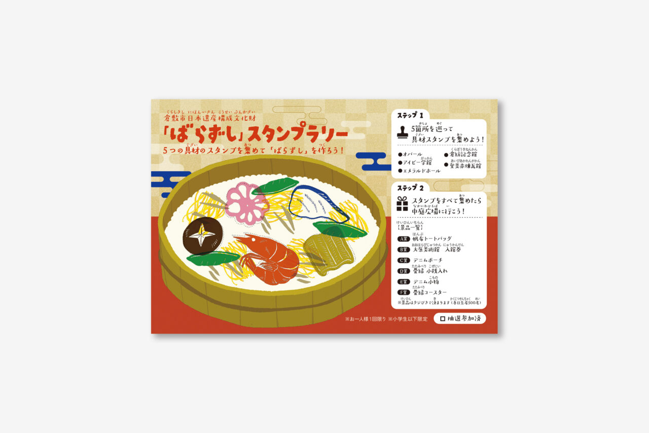 2025年10月25日・26日に倉敷アイビースクエアで開催された「日本遺産フェスティバル in 倉敷」内で開催された小学生以下対象の「ばらずしスタンプラリー」の台紙、スタンプイラストの制作を行いました。
