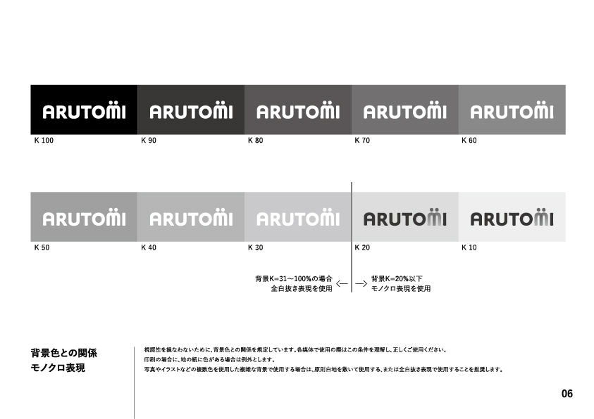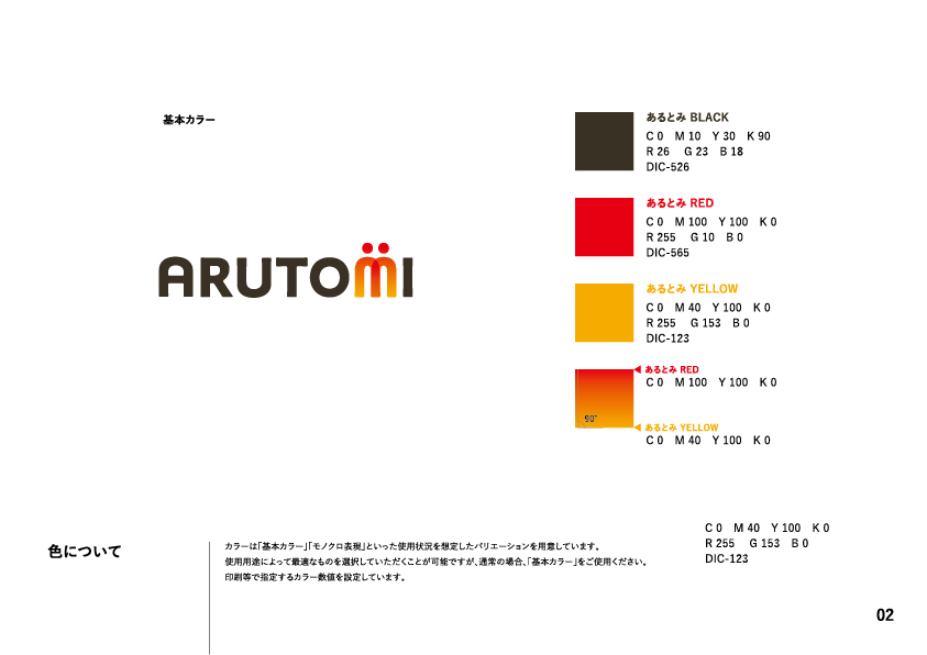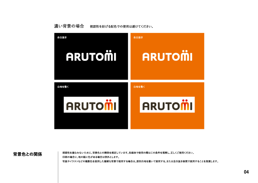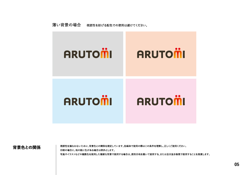 ARUTOMIのMを「あるとみ」と「お客様」に見立て、並んでいる(並走)している見え方にしています。色に関して、1人1人は1色でも、「あるとみ」と「お客様」が一緒になって進む部分(重なっている部分)が、一番濃く(強く)なる表現にしています。