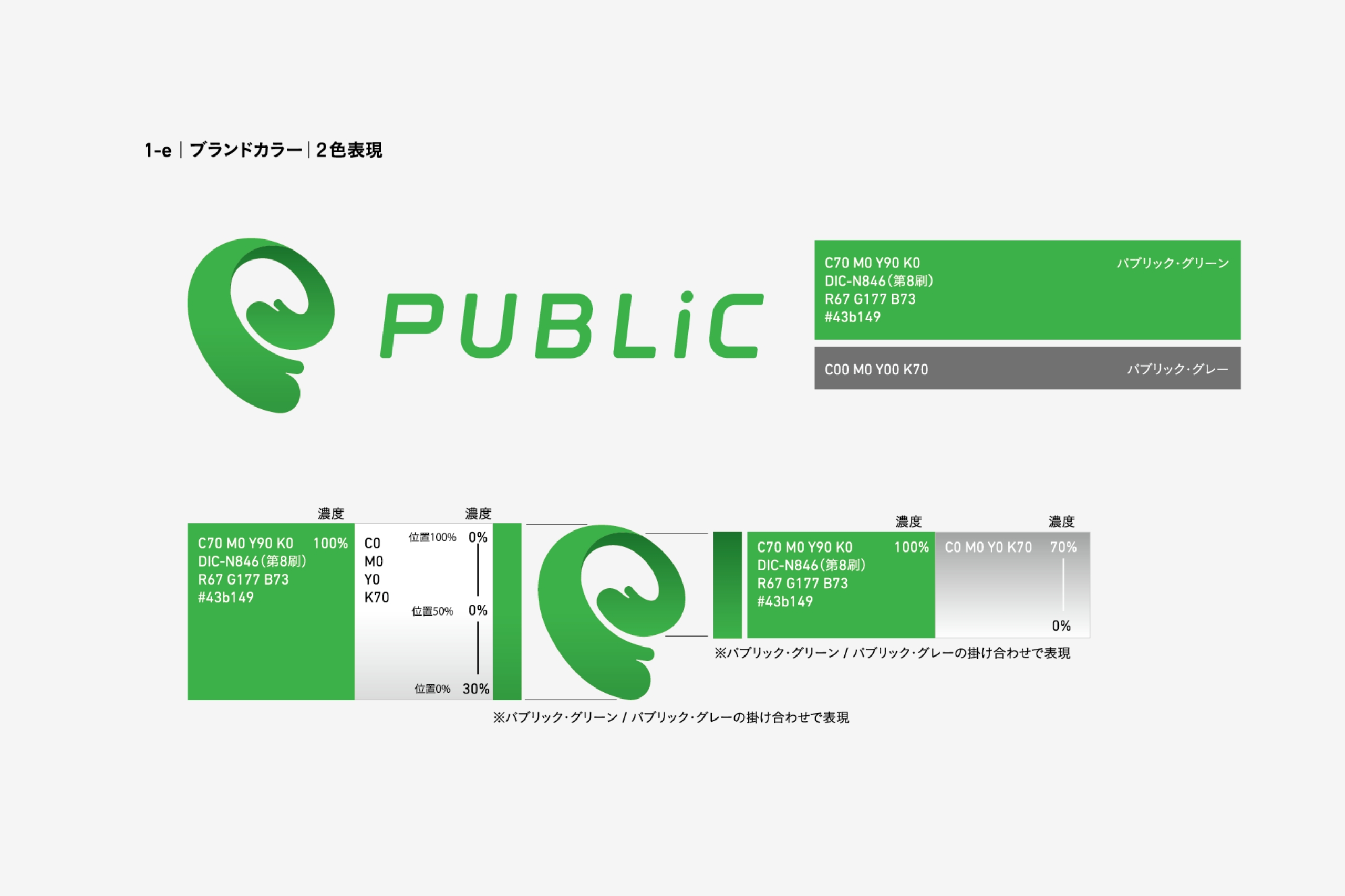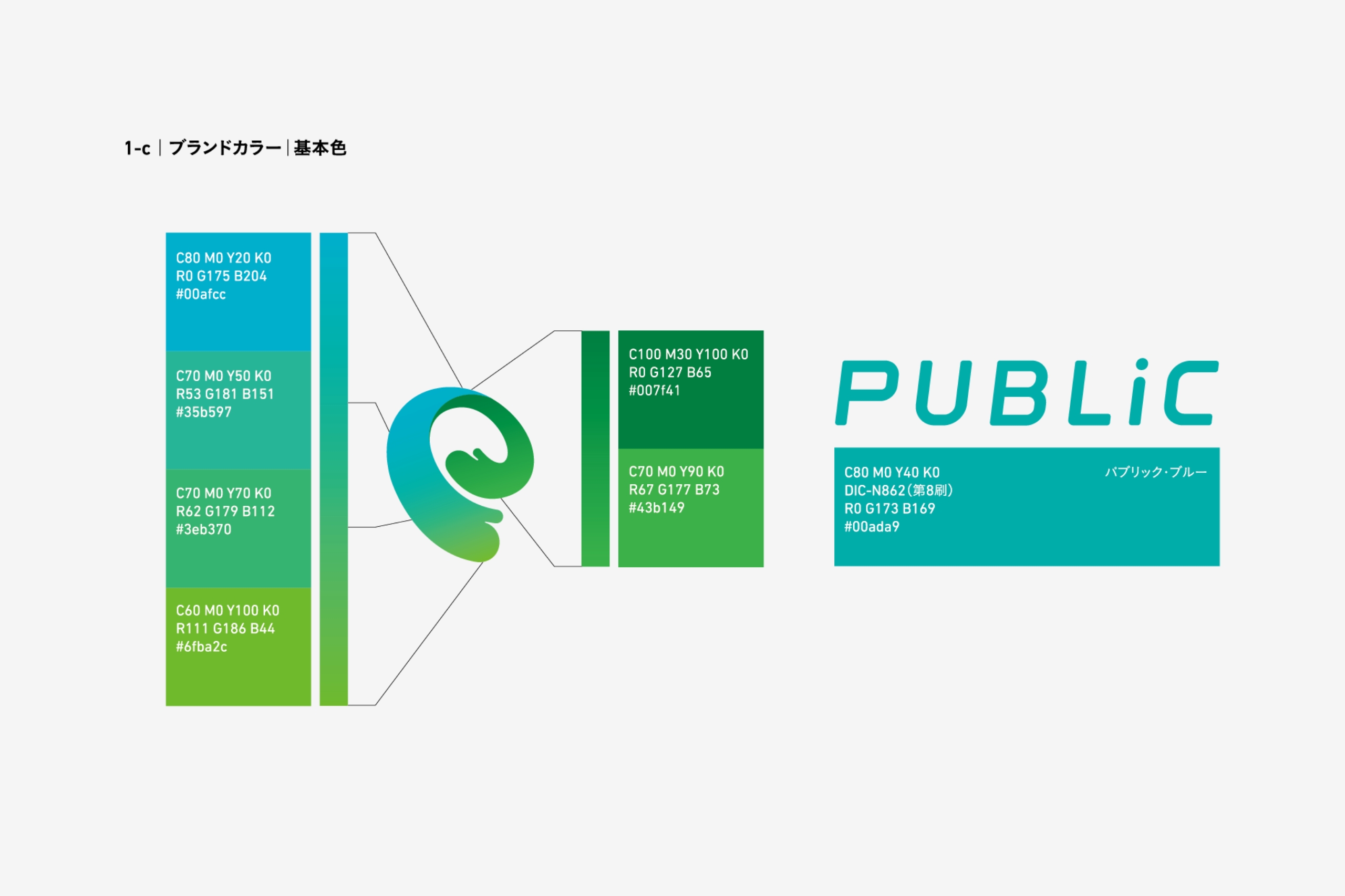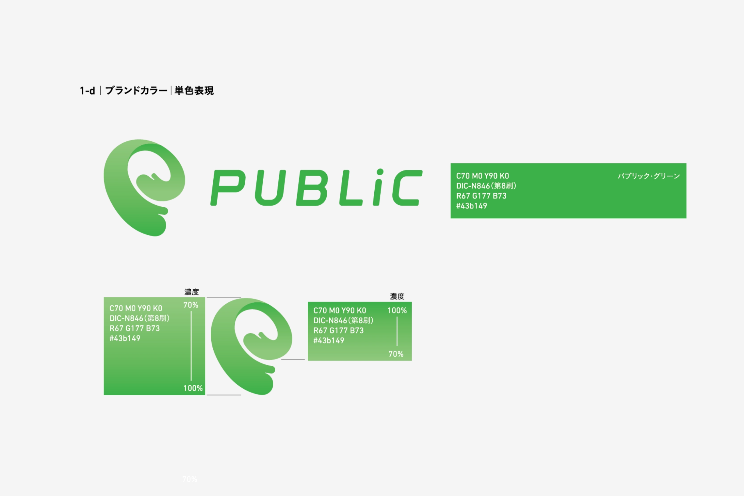 ロゴタイプは、誠実・実直さと共に、 勢いよく前進する企業姿勢、 さらには、 柔らかな発想や考えをイメージさせるものとして表現しています。 PUBLICの「I」の文字を「i」 として、 PUBLICの中には「私」を含む「人々」で 成り立っている様を表現しています。
